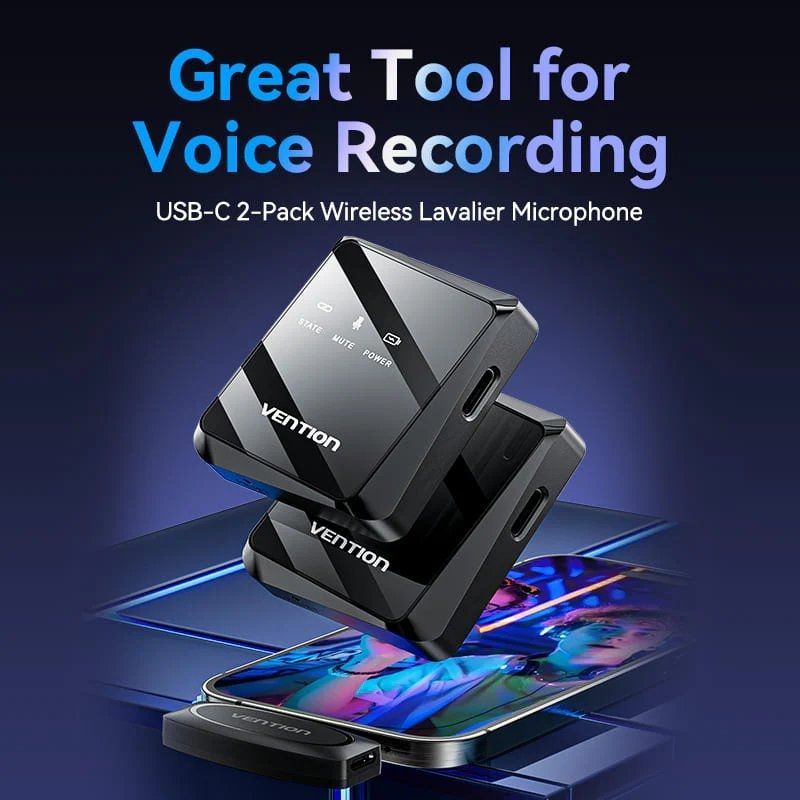 Micrófono Inalámbrico con Clip Vention NCBB0 USB Tipo-C Incluye Receptor 2 unidades
