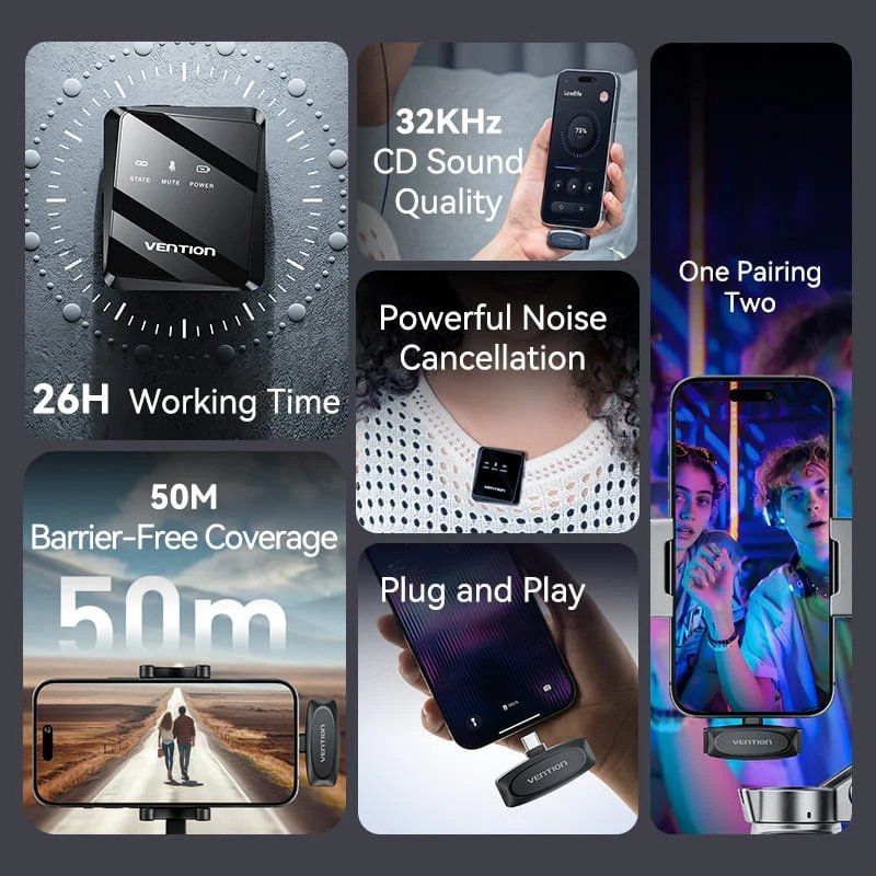Esta comodidad de conectar y usar le permite concentrarse en lo que realmente importa: crear contenido asombroso.Amplia compatibilidad: el sistema de micrófono Vention está diseñado para funcionar sin esfuerzo con una variedad de dispositivos USB-C, como teléfonos inteligentes y tabletas, lo que lo hace versátil y fácil de usar en diferentes escenarios.Diseño cómodo y discreto: el diseño liviano y con clip del micrófono garantiza que sea cómodo de usar, incluso durante períodos prolongados
