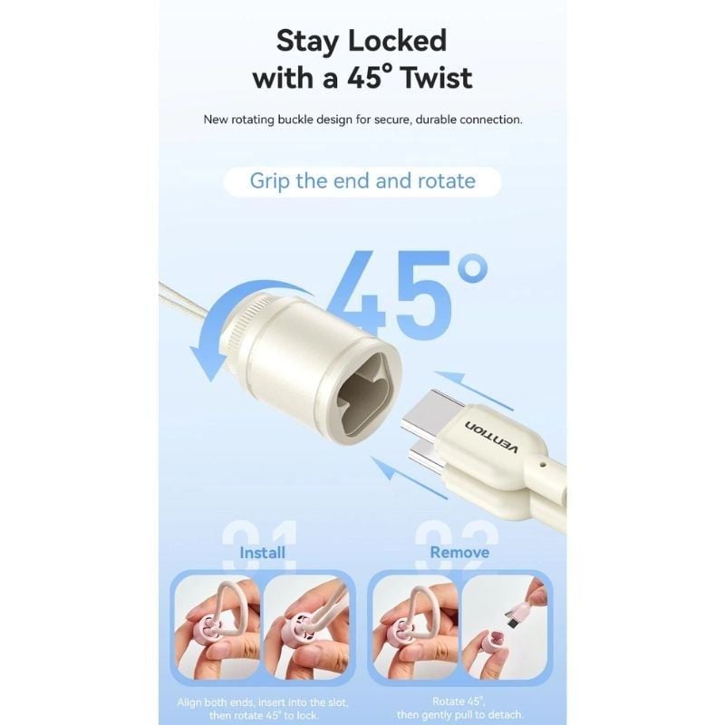 " Compacto y portátil'Power Bank de 22.5 W y 20.000 mAhCon cable USB-C desmontable incorporado'Permanece seguro con un giro de 45º'Nuevo diseño de hebilla giratoria para una conexión segura y duradera.'Sujeta el extremo y gíralo'Instalar'Alinea ambos extremos, insértalos en la ranura, luego gira 45º para bloquear.'Quitar'Gira 45º, luego tira suavemente para soltar.'Apto para viajes en avión'Cumple con los estándares internacionales y nacionales de viaje aéreo.''Especificaciones''Colores: Negro, Beige, Rosa, Azul'Carcasa: PC + ABS'Puertos: USB-A