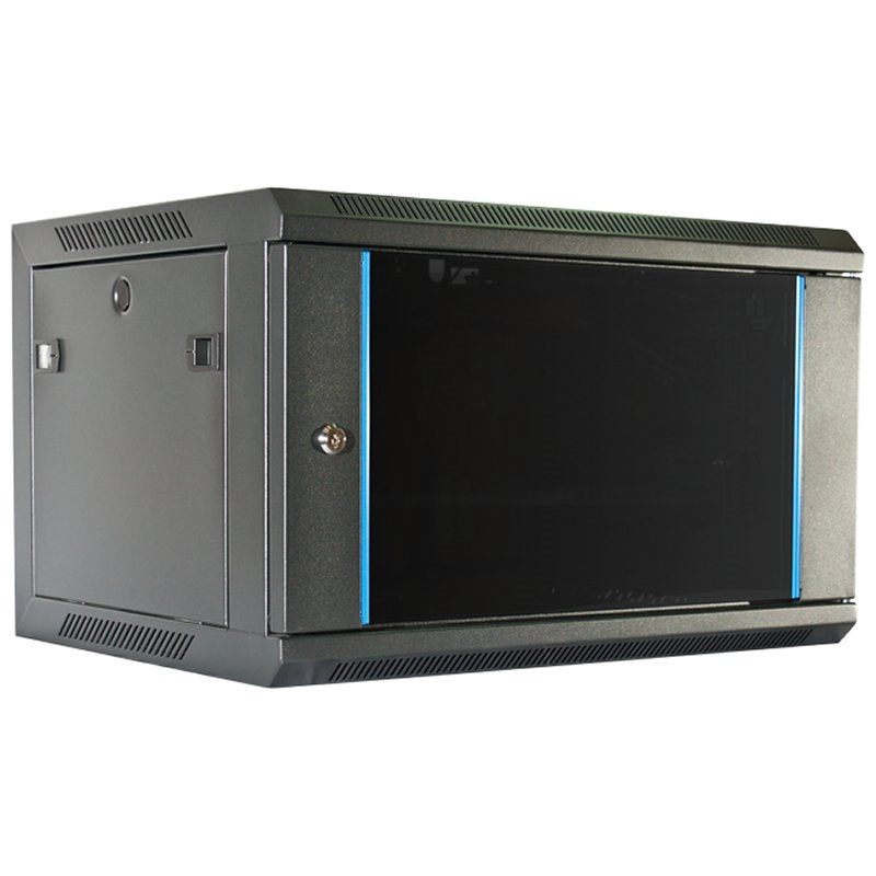 - Rack 6U con 450mm de fondo sin accesorios serie estándar, con gran calidad y resistencia, de fácil instalación en pared y apropiado para alojar en su interior routers de conexión a internet, pequeños repartidores Switch para interconectar servidores, puestos de trabajo, impresoras de red y teléfonos IP.