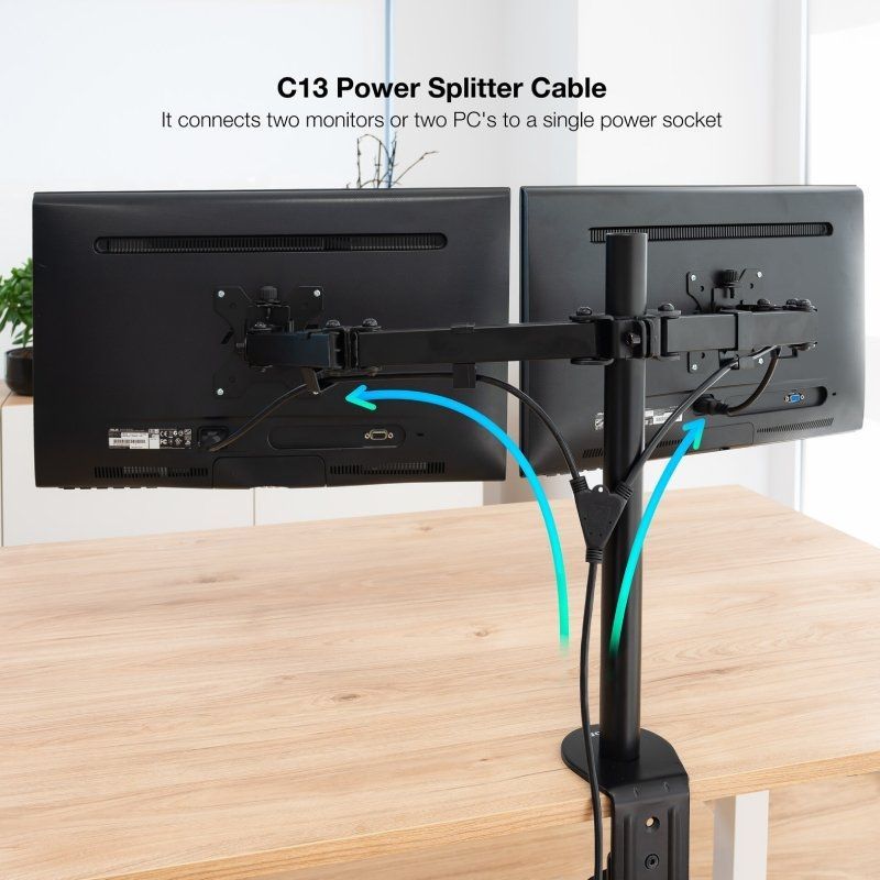 "Cable de Alimentación CEE7/M a 2xC13/H, Negro, 1.8 mConector CEE7 macho en un extremo y dos conectores C13 hembra en los otros.Especificación:Se utiliza para conectar dos PCs o dos monitores a una toma de corrienteConector 1: Schuko (CEE7/7) machoConector 2: 2 x C13 hembraCalibre del cable: H05VV-F 3X0.75m2Longitud: 1.8 m Color: NegroNormativaS: RoHSTest de Funcionamiento: 100% testadoContenido del paquete:1 x Cable de Alimentación CEE7/M a 2xC13/H, Negro, 1.8 mInformación del embalaje:Bolsa retail con autocierrePeso aprox.(kg): 0,288Medidas aprox.(mm) alto/ancho/largo: 200/260/50"