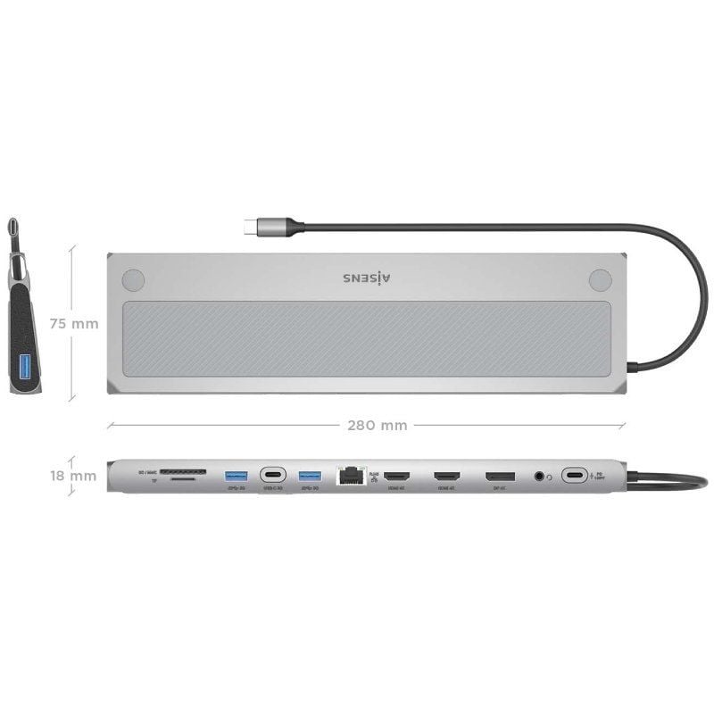 Docking USB Tipo-C Aisens ASUC-12P020-GR 2xHDMI 4K 3xUSB 1xUSB Tipo-C 1xRJ45 1xDisplayPort 1xLector Tarjetas 1xUSB Tipo-C PD Gris